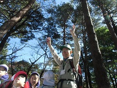 森の案内人(3名)の方々の説明を聞きながら森の中を