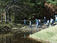 池の中「何か動いているよ」「落ちないように気をつけて」