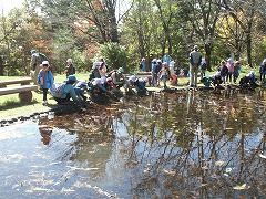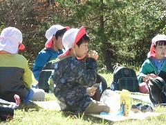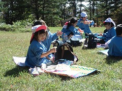 たくさん歩いたのでおなかがぺっこぺこ ・・・ 森の中青空の下でのお弁当は最高でした。