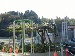 たくさん葉をつけ、毎日のように落ちていた藤の葉が、職人さんの手にかかるとあっという間にきれいに剪定され、厳しい冬の寒さに向けて冬支度が整いました。