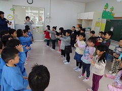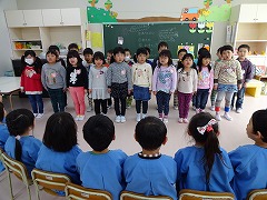 4・5歳児合同で「とんぼのめがね」「夢を叶えてドラエモン」の歌のプレゼント。