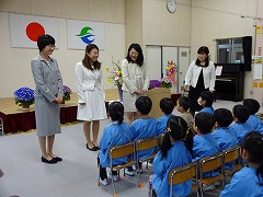 27年度がスタート 2015年4月9日 19時10分 4月7日(火)に第1学期始業式と入園式を行いました。進級児19名入園児18名計37名と職員6名で平成27年度がスタートしました。 元気いっぱいの返事や挨拶が聞かれ、進級・入園への期待が感じられました。その期待に応えられるよう、そして、「心豊かなたくましい子ども」をめざし、職員一同頑張りたいと思います。