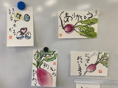 6月2日(金)には、岩根地区の佐藤初子様をお呼びして、「絵手紙教室」を行いました。