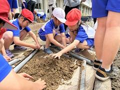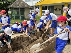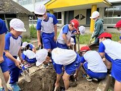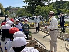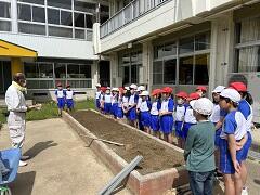 5月25日(木)、3学年では、白沢長芋生産組合の組合長さんを講師にお迎えして、とろろ芋の苗の植え付けを行いました。とろろ芋用のパイプに専用の土を詰めて、学校花壇に苗を植え付けました。先日集荷場を訪問し、とろろ芋に興味関心が高まった子どもたち、実際に自分たちで栽培することになりました。これから約半年、収穫までとろろ芋の栽培に取り組みます。