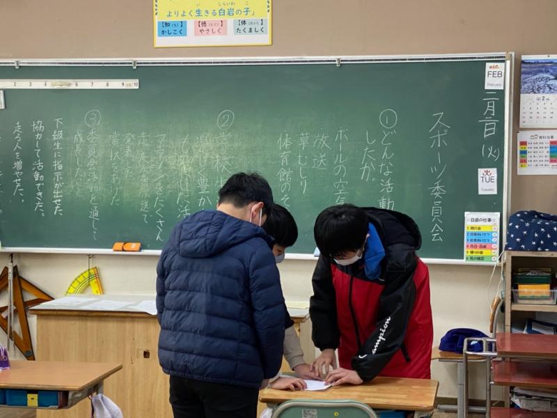 本日は、児童会委員会活動の日でした。今日は、来週から行っていく「活動発表」の準備のために話し合いをしたり、発表資料をつくったりしていました。話し合いの中で、1年間でできるようになったことや、自分たちが頑張ったことで全校生に協力してもらえるようになったことなど、数多くの成果が発表されていました。学校は、全児童の頑張りによっても、成立していることが分かり、うれしい気持ちになりました。