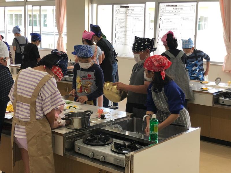 また、家庭科室からは、5年生の声が響いてきました。5年生は、今年から家庭科の学習をしています。今日は、初めての調理実習で、青菜と卵をゆでる調理に取り組みました。包丁を使ったり、ガスコンロを使ったりすることを、楽しみにしていた児童、「こわい」と思っていた児童など、様々だったと思いますが、グループの友だちと協力しながら上手にできていました。