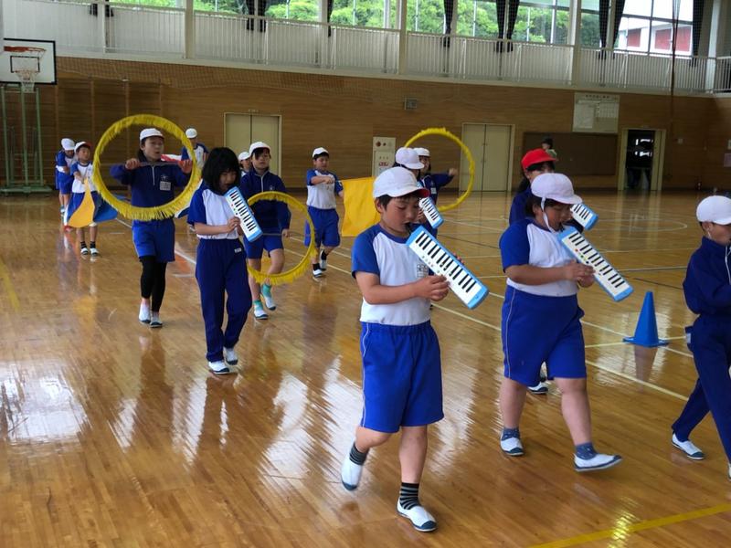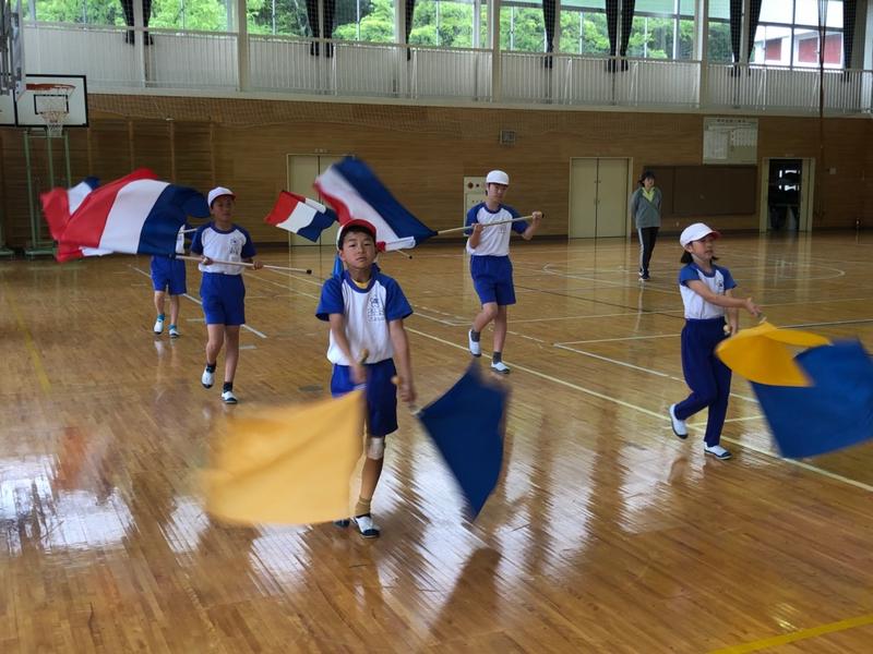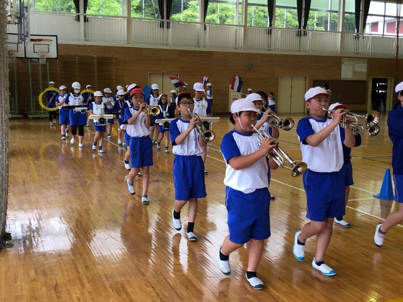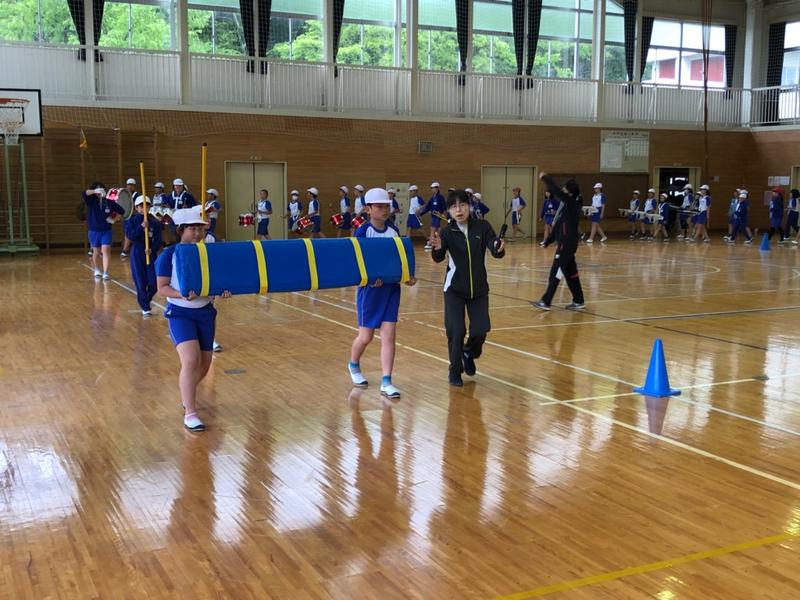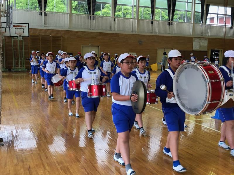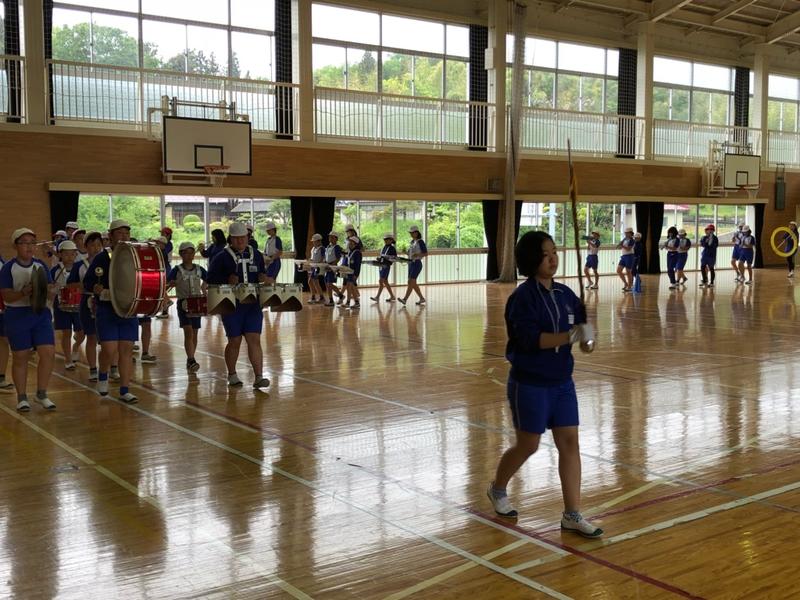 今日は雨模様のため、校庭での練習ではありませんでしたが、体育館で行うことで、お互いの音を聴き合いながら、演奏を確かめることができました。また、公道を歩くことを想定した横幅の取り方や歩く速さの確認もすることができました。