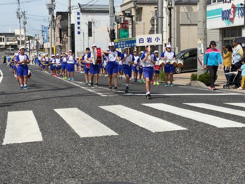 白岩小学校は、本宮市内の小学校7校の中で、最初の演奏でした。代表児童2名が、市長さん、警察署長さん、教育長さんといっしょに行進するなど、令和元年として、思い出に残る鼓笛パレードとなりました。
