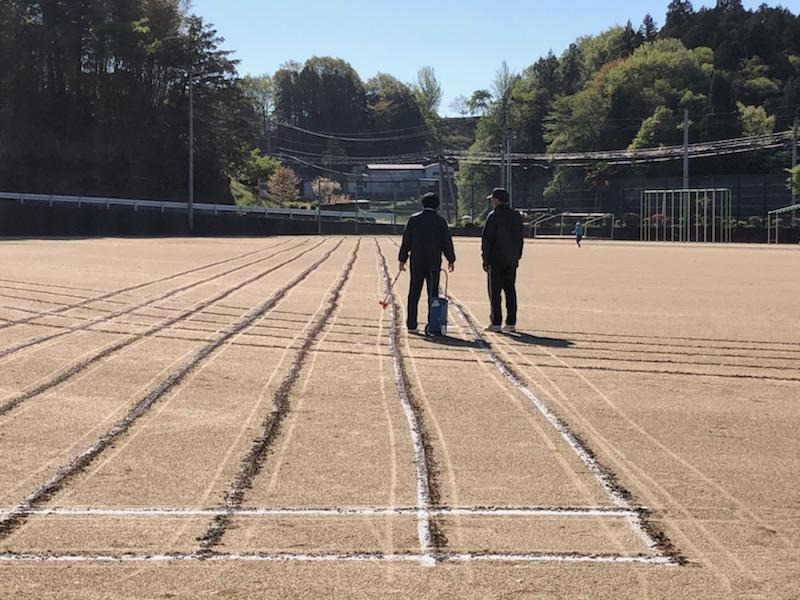 校庭には、新しいラインを引いて、南達方部小学校交歓陸上競技大会に向けた練習場所を整えました。