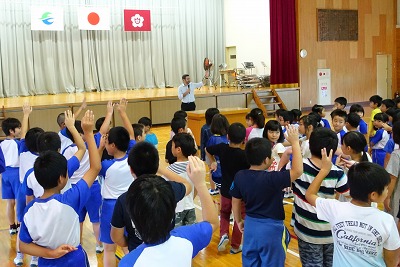 全校生で、「Let's enjoy learning!」と唱和してお迎えをしました。