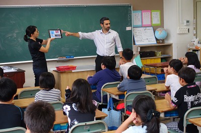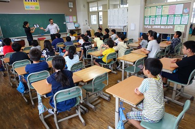 4年生教室で外国語活動の授業に臨みました。