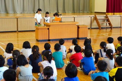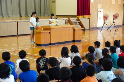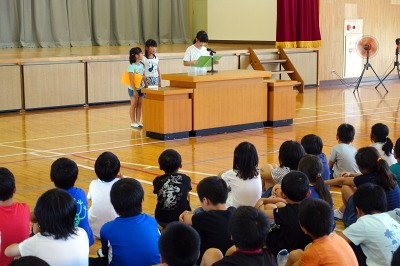 1学期がんばったことや夏休みにしてみたいことなどの発表がありました。