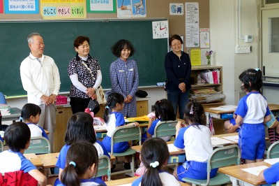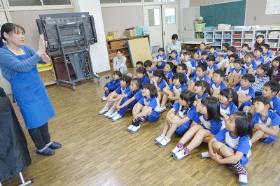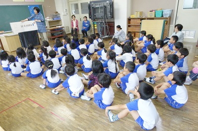 1年生の説明をよい姿勢で落ち着いて聞いていました。