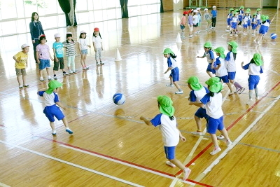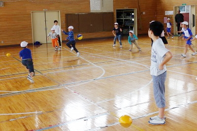 しっぽとりゲーム、鬼遊び、リレー遊び、転がしドッジボールをしました。