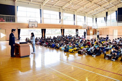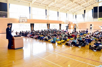 、交通ルールや安全に登下校する際の留意点などの講話をいただきました。