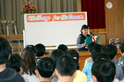 「みんな元気で仲がいいです。」と歓迎の言葉を発表しました。
