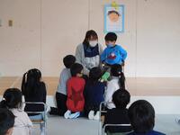 おたのしみでは、イクタンお話し会の方に来ていただき、手袋人形や大型絵本「ぐりとぐらのおきゃくさま」を見たり、パネルシアター「もりのクリスマス」を見て、一緒に歌ったりして、楽しい時間を過ごしました。
