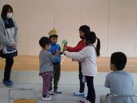 最後には、年長さんから年少さんへ、司会の引き継ぎを行い、恥ずかしがりながらも目を輝かせ、マイクを受け取っていました。