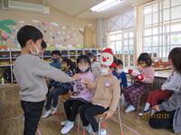 ばら組さんは、みんなで「あわてんぼうのサンタクロース」を歌い、サンタじゃんけんのゲームをしました。