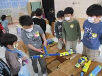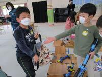 空き箱などを使い、銃や車を作りました。「おすすめはこれです!」と自分の作った品物を