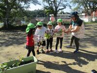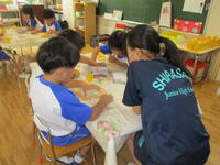 ばら組さんは、中学生と一緒にお部屋や園庭の遊び、お絵描きの活動を楽しみました。さくら組さんは「虫バスケット」や運動遊びをしながら交流を楽しみました。