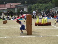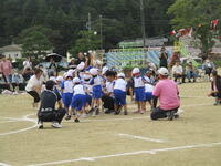 年少組は、練習から「頑張ろう!」という気持ちが見られ、当日も大きな力となって現れていました。個人走ではそれぞれの障害物に挑戦しながらゴールまで進むことができました。ダンスでは、自分たちだけで踊りや体形移動を行うことができ、最後の花火もきれいに上がりました。