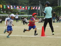 年長組は、司会の役割をはじめ、個人走やバルーン、リレーといった多くの競技を友達と競い合ったり、協力したりしながら行うことができました。バルーンでは息を合わせて大技を何度も成功させ、リレーでは白熱した展開が多く、最後まで見どころ満載でした。応援席では年少組も大盛り上がりでした。