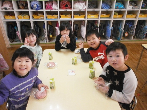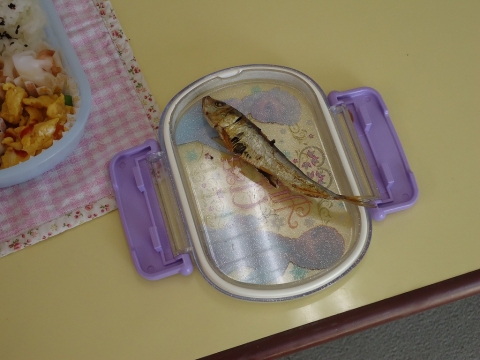 ヒイラギとイワシについての話を真剣に聞いたり、焼いたイワシをお弁当の時に食べたりしました。年長さんはイワシを頭がらガブリ! きっと鬼は逃げ出しましたね。