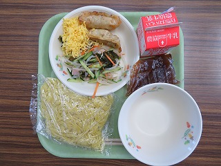 2学期最初の給食は、なんと「冷やし中華!」、先生方も給食では食べたことがないということで、大変楽しみにしていました。なかなかメニューとして難しいものですが、給食担当の先生方の努力もあり、実現することができました。生徒からの評判も大変好評でした。ごちそうさまでした。