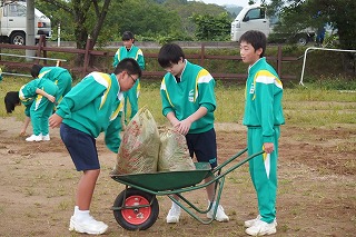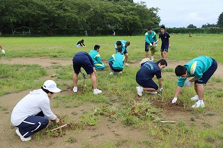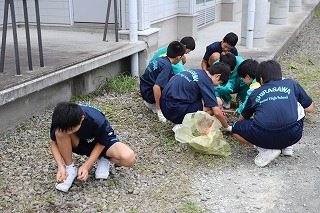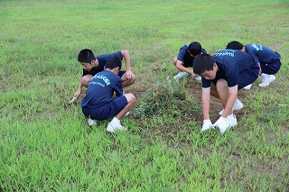 先週に悪天候で延期としていたPTAの奉仕作業を8日(土)に実施しました。予報では雨でしたが、奇跡的(?)に雨が降らずにすみ、保護者のみなさまと生徒の皆さんの協力で無事に終えることができました。おかげで、校地内もきれいになりました。本校は敷地が広い上に、隣接する野球場とその駐車場もいつも使わせていただいていることもあり、除草作業を行います。保護者の皆さんには、いつもご負担をおかけし申し訳なく思っております。加えて、校庭も部活動の関係もあり、例年以上に草が生えていました。みんなで協力したことで、かなりきれいになりました。ありがとうございました。