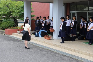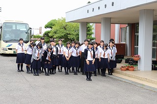 吹奏楽部にとっていよいよ最後のコンクールになります、安達地区小中音楽祭第2部合奏が、いよいよ本日行われます。本校は12:30からの出番ですが、朝8:00に先生方や登校してきた生徒に見送られ出発しました。夏休みや休日も含め、毎日一生懸命に練習をがんばってきた吹奏楽部。最高の演奏ができるようにがんばってほしいと思います。