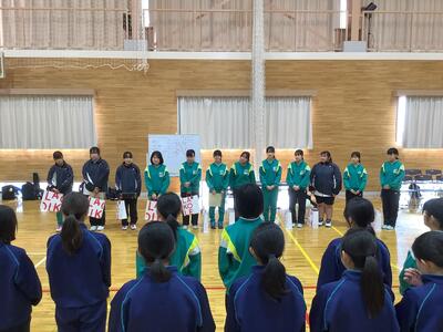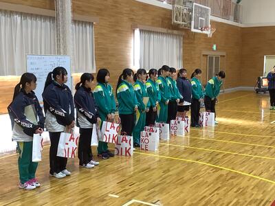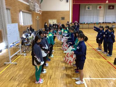 安達中学校と二本松第一中学校では安達管内少年少女バスケットボール大会が行われました。初日は二本松一中と対戦しました。気温が低く、思うようなプレーができずに苦労した場面もありましたが、集中力を切らさず、互いに声をかけ合い、62対18で見事に勝利し、準決勝に駒を進めました。準決勝では優勝した本宮二中に惜しくもに敗れ、決勝進出は逃しましたが、今後につながる貴重な経験ができたと思います。