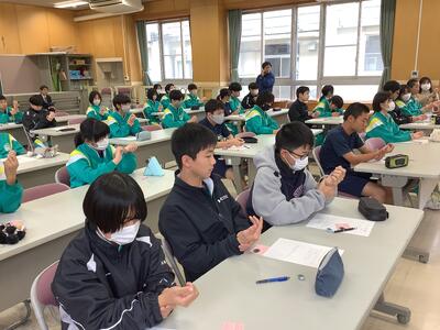 一方、私立高校受験者は、これから始まる面接練習のガイダンスを聞いてました。
