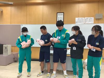 本日の避難訓練は、学校に不審者が入ってきた場合を想定としたものでした。学校の敷地は塀やフェンスで囲まれているわけでないので、どこからでも入れる状況にあるといえます。また、「不審者は来ないだろう」という油断は、いざというときに適切な行動が取れなくなるかも知れません。生徒だけでなく、私たち教職員の訓練として位置付けられた訓練です。警察の方に不審者役をしていただき、迫力ある演技をしていただいたおかげで、緊張感をもって不審者対応の訓練ができました。なお、避難後は簡単な護身術を学びましたが、もっとも大切なのは不審者を刺激せずに距離を取ることだそうです。