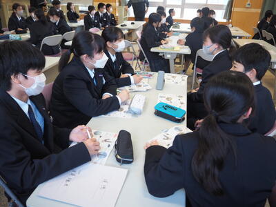 保健体育の授業では、創作ダンスに取り組んでいます。グループで曲を選び、相談しながら、これまで学習したステップを生かしてダンスを考えます。楽しそうに笑顔で踊る姿はいいですね。来週はいよいよ中間発表会です。冬期間は積雪等により外での運動機会が減ってしまいます。ダンスであれば屋内でも楽しく運動することができますね。