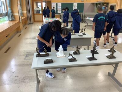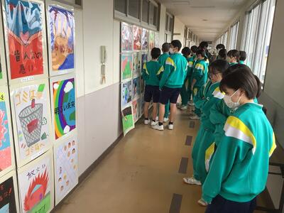 いよいよ明日は白中祭。準備はすべて整いました。本日は、全校生で展示物を鑑賞しました。中校舎会議室、北校舎1~2階廊下、体育館に展示・掲示されていますので、どうぞご覧ください。