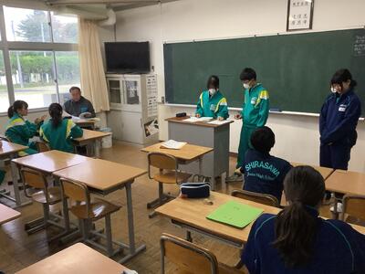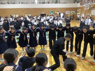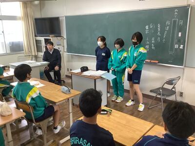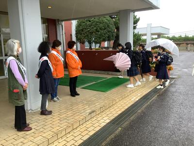 本日、今年6回目の「あいさつ運動」がありました。あいにくの天気でしたが、生徒たちに向けて、優しい笑顔であいさつをしていただきました。生徒は白中祭の準備で少し疲れてきているようで、眠たそうな生徒が多かったように感じます。それでも温かく声かけをしてくださる女性会の方々には、感謝しかありません。生徒たちには、もっと大きな声であいさつが返せるようにしてほしいものです。