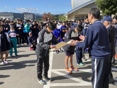 10月20日(日)、第18回もとみや駅伝が行われました。 気温はやや低めでしたが、天候にも恵まれ、多くのランナーが参加し、盛大に開催されました。本校からは6名が参加しました。昨日行われた文化祭の準備等であまり練習はできていませんでしたが、精一杯走り、見事に襷をつなぎ、完走することができました。団体では3位、個人では1区の氏家さんが区間賞を獲得しました。