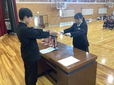 昨日から、後期生徒会本部役員が、3年生中心の前期役員と共に「朝のあいさつ運動」に参加しています。まだ、正式には後期役員の活動は始まっていませんが、引継ぎをスムーズにするために行いました。いよいよ来週の28日(月)には、後期専門委員会があります。3年生が中心となって活動していた前期から、いよいよ2年生がリードする後期へと切り替わります。2年生にとっては、最高学年に向けての第一歩であり、先輩としての自覚や責任感が大きく増すことになるときです。どことなく表情や態度に自信が表れ、だんだんと言動にも、大人びた雰囲気がにじみ出てくることでしょう。まさしく、学校の中で頼もしい存在へと向かっていくことが期待できます。がんばれ2年生!ここまで後輩を率いてきた3年生には、これからはサポート役として支えてくれることでしょう。