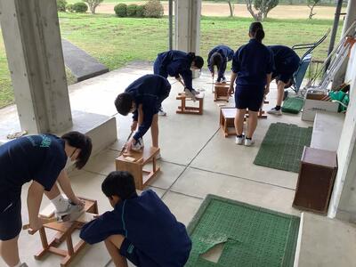 だんだんと寒さが身にしみる季節となってきました。体育の授業では、例年、この時期になると武道の授業として「柔道」を行います。10月15日(火)に、生徒に協力してもらって柔剣道場に畳を敷きました。およそ一ヶ月間の柔道。道着を着用し、裸足で行いますので、寒い日は少し辛く感じるかも知れません。ただ、柔道の技能を身に付けること以上に大切なのは、礼儀作法や相手を敬う心を養うことです。わずかの期間ですが、生徒たちにはケガに注意しながら、武道に親しんでほしいです。