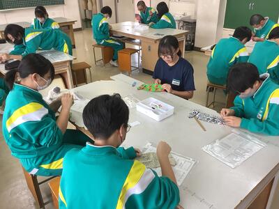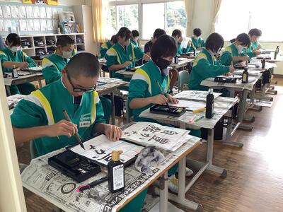 白中祭の準備期間中は、何かと落ち着かない雰囲気でしたが、ようやく日常の学校の姿に戻ったような気がします。下の写真は、昨日と今日の技術・家庭、書写の授業の様子です。
