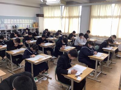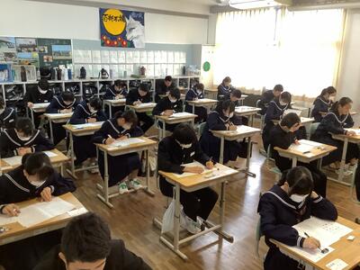 今日の3年生は、朝から実力テストで、真剣な表情で問題に向き合ってました。いよいよ、受験モードに切り替わるときです。(がんばれ3年生!)