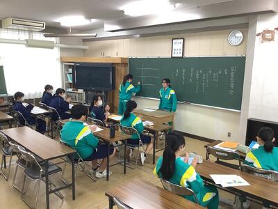 2024年10月28日 19時00分今日の放課後は、生徒会専門委員会でした。まず前半は、前期の委員会が集まり、これまでの活動をふり返りました。その後、後期の委員会の教室に移動し、2年生が中心となる後期の組織編成が行われました。専門委員長となる生徒は、事前に2学年集会を通して希望をとり、自己アピールなどにより審査されて選ばれた生徒です。ですから、意欲をもって委員会に臨みました。これからの活動に向けて、話し合いを進めているようすに、頼もしさを感じました。