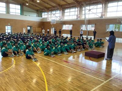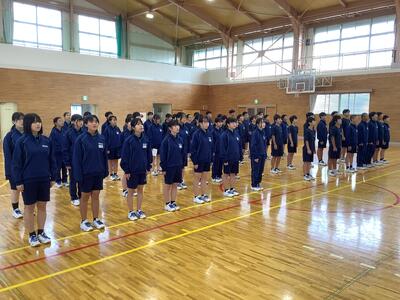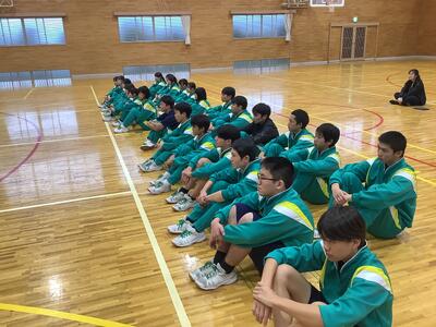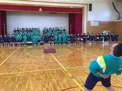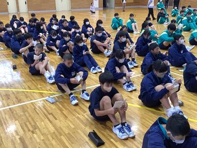 今日の5校時は、11月1日(金)に行われる「校内芋煮会」に向けて、体育館での全体指導と、学級内で班編制と係分担を行いました。今年で3年目の芋煮会。けんちん汁・豚汁・カレーの3種類から各班で1つを選んで調理します。材料は給食業者に発注します。野菜類は班員で分担し、自宅でカットしてきます。お肉に関しては、衛生上の観点から本校の調理員さんがカットしてくれます。(ありがたいですね!)ですから、調理は「炒めて・煮込んで・味付けする」だけです。(簡単ですね!)ただし、毎回、火おこしに時間がかかり、お湯を沸かすことに生徒は苦労しています。そこが、芋煮会の見せ場です!ぜひとも班員が協力して、おいしく調理できることを願っています。なお、当日の午前中は、校内体育大会を予定しています。保護者の参観も可能です。