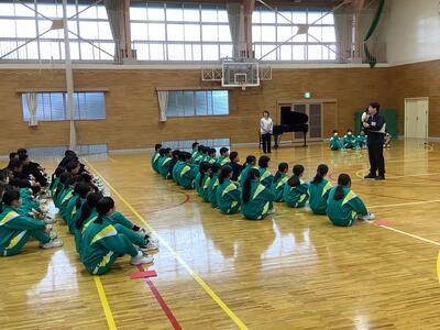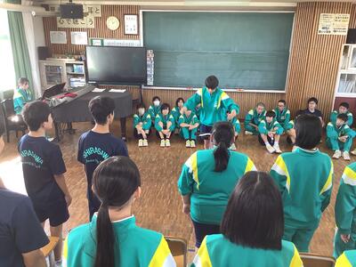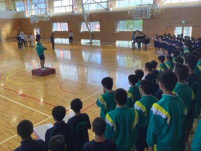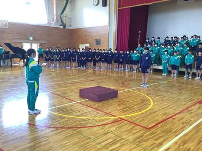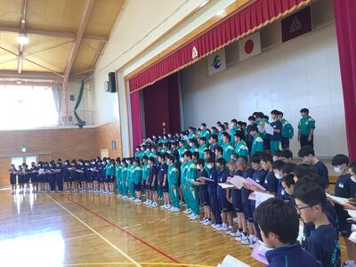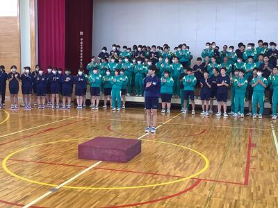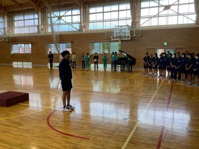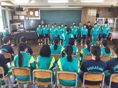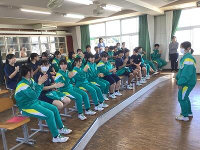 今週18~20日に、三重県伊勢陸上競技場で行われる「JOCジュニアオリンピックカップU16陸上競技大会」に、1年生の平栗さんが「女子ジャベリックスロー」に出場します。先日の全校集会で紹介はしていましたが、今週末の大会ということで、サプライズの壮行会を実施しました。福島県代表として、そして、白沢中学校の生徒として参加するので、学校全体で応援したいということでの壮行会。応援団長・副団長のエール、生徒会長から激励の言葉、全校生からの拍手、白沢中学校全体で応援しました。白中祭と日程が重なってしまいましたが、精一杯力を発揮してきてほしいです!