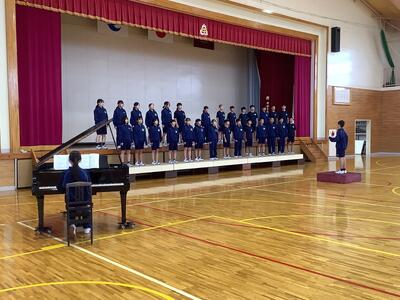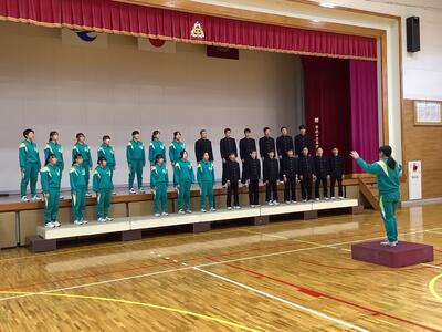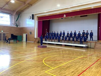 今日の合唱練習では、3年1組と2年2組が相互に合唱を披露し、学年の壁を越えた合唱交流を行いました。3年生にとっては、2年生の歌声から1年前からの成長を感じ取るだけでなく、先輩として後輩へのアドバイスをする機会となりました。(気持ちも引き締まったことでしょう。)また、2年生にとっては、自分たちには出せない声の響きと深みに圧倒され、先輩の合唱に心が惹かれたと思います。(先輩からのアドバイスは大きな励みとなったことでしょう。)いつも見ていた先輩の姿が、「やっぱり3年生はすごい!」というように、改めて輝いて見えたようです。