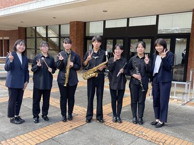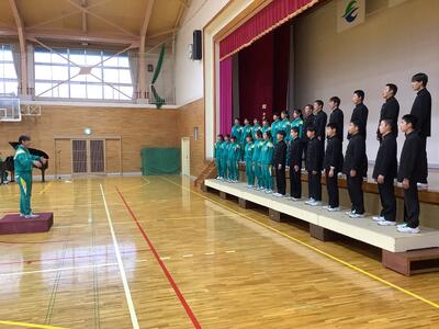 吹奏楽部の皆さんが目標としてきた音楽祭が、本日、喜多方プラザにて開催されました。本番9:54の演奏に向けて、早朝から体育館に集結し、最後の調整をして万全な態勢で臨みました。結果はまだわかりませんが、演奏を終えた集合写真の表情を見れば、やれることはすべて出し切れたのだと感じます。吹奏楽部の皆さんには、これまで指導してくださった先生方、活動を支えてくれた家族に感謝しながら、この音楽祭、そして、これまでの活動をふり返ってみてほしいと思います。本日は、お疲れ様でした!
