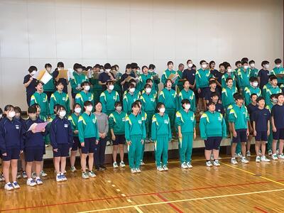 今日は初めての全校合唱練習でした。合唱コンクールの練習は、各学級で順調に進んでいますが、全校生による合唱は、約170名ですから「集まって練習!」とすぐにはいきませんので、まだまだといった状況です。昨年の白中祭では『正解』を全校生で歌いましたが、今年は・・・。学級よりも大規模な集団での合唱は、きっと迫力が違うと思います。練習をさらに重ねていきますので、当日を楽しみにしてください。(閉祭式で歌う予定です。)