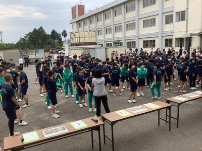 定期テストが終わり、今日は久しぶりの部活動。新人戦まで残り2週間、どの部活動も目標に向かって汗を流しています。(残暑が厳しいため、熱中症に注意しながら活動しています。)レギュラーに選ばれるか、どこのチームと対戦するのか、勝てるか、いろいろと気になることがありますが、1,2年生による新チームとしてのチャレンジとして、思い切りよくトライしてほしいです。