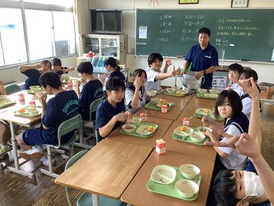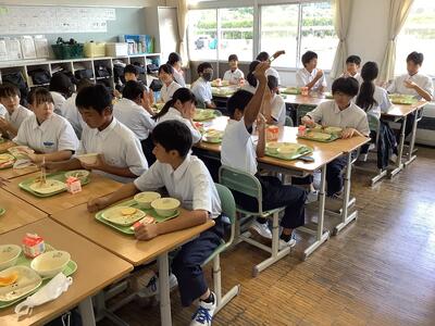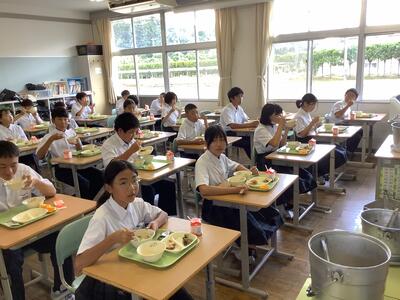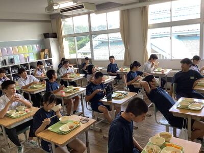 いよいよ来週は、1,2年生新チームによる『安達支部中体連新人大会』です。毎日の練習、週末の練習試合、各種大会によって、少しずつチーム力が高まってきました。各部の成長を本番で見せてくれることでしょう。本日の給食は、中体連応援メニューの「ソースカツ」でした。毎回、栄養士、調理員の方による「勝利を呼ぶBIGカツ」での応援に感謝します。ごちそうさまでした!